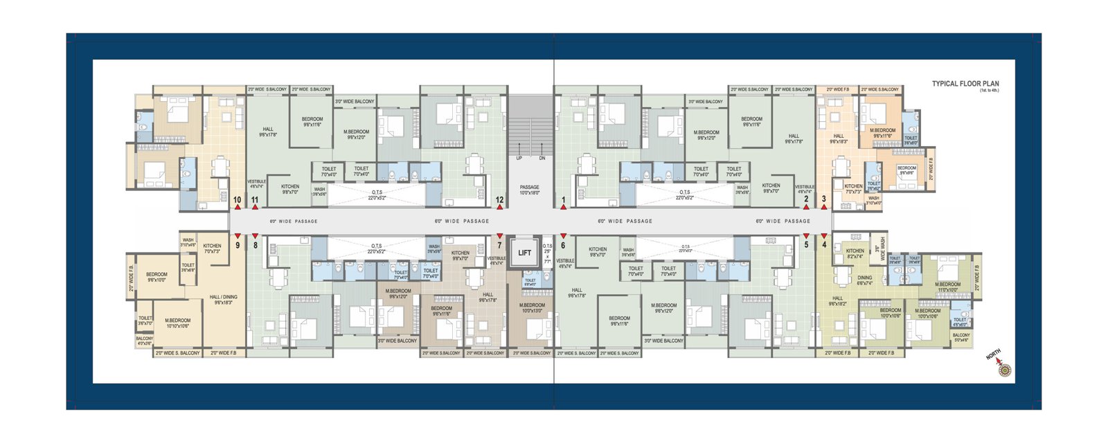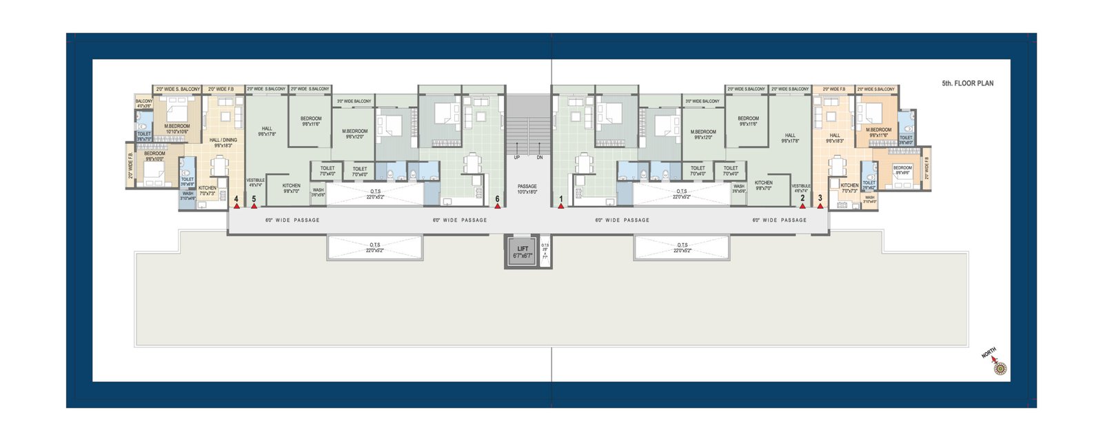 Hall and kitchen with 24"x48" vitrified tiles. Common bedroom with 24"x24" vitrified tiles.
